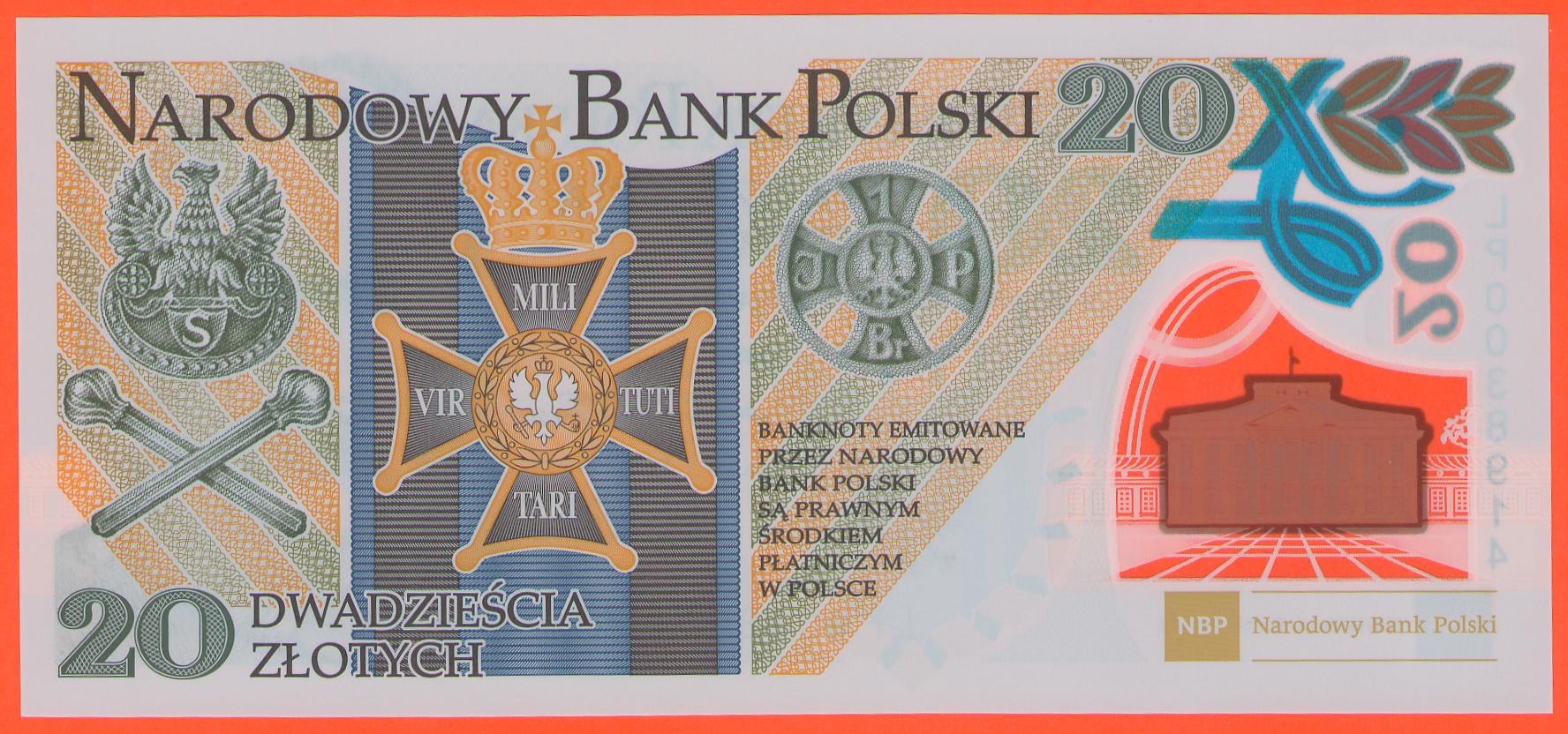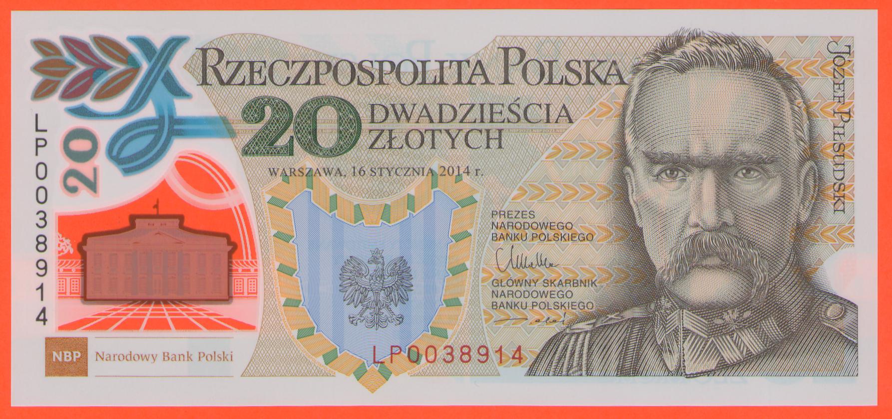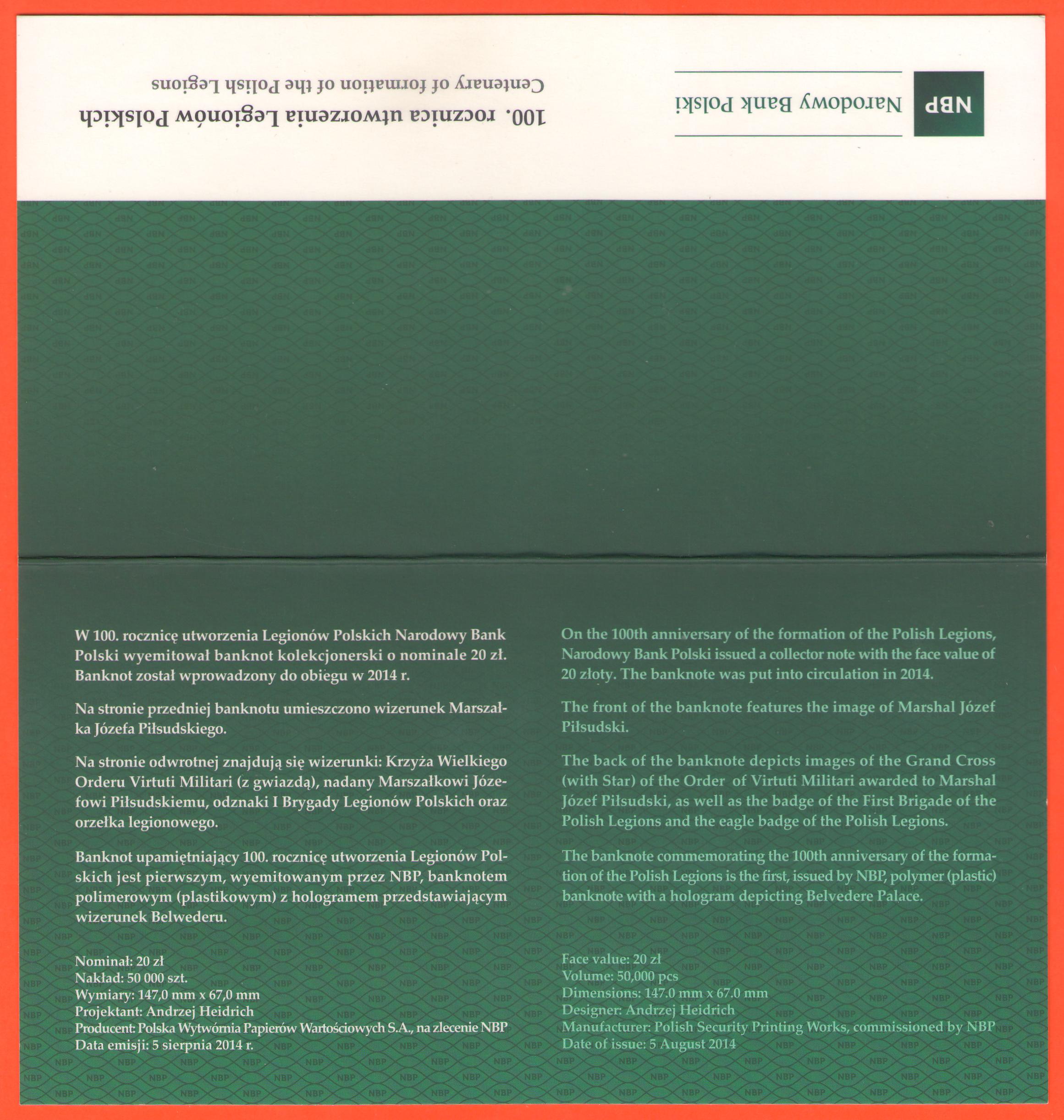 Польща 20 злотих 2014р “100-річчя формування польських легіонів” Пілсудський” полімер