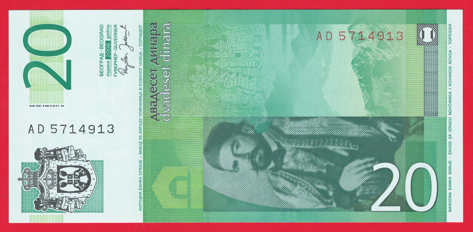 Сербія 20 динар 2006р P-47 UNC
